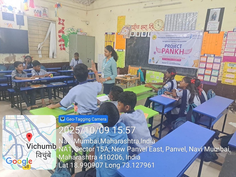 On 9th October 2025, as part of Project PANKH, the Social Service Committee of PIMSR conducted an Educational Session on Basic English Grammar and Vocabulary for the students of Zilla Parishad Gyan Jyoti Savitribai Phule School, Podi. The session was organized and conducted by MMS students — Mr. Nawaz Shaikh, Ms. Siddhi Vijay, Ms. Sredha Kurup, and Mr. Harshawardhan Shelke. The primary objective of this activity was to strengthen the importance of learning through fun-filled, interactive methods and to enhance the communication skills and confidence of school students from rural backgrounds.