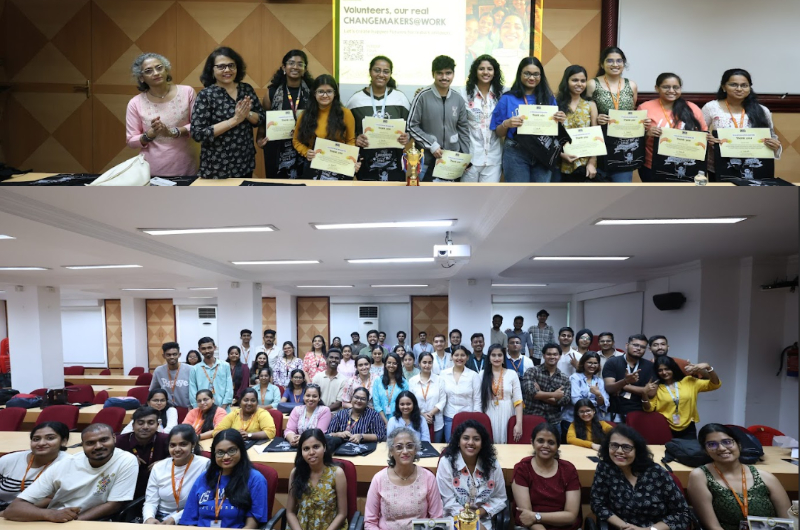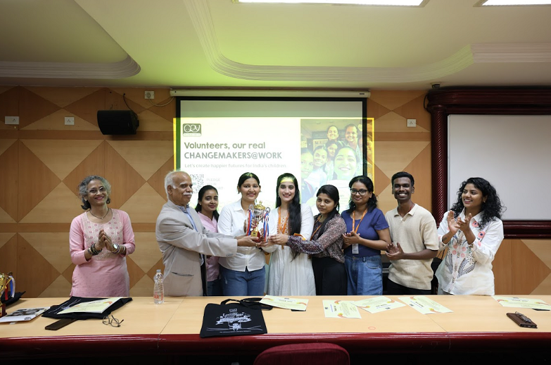The felicitation ceremony was graced by the esteemed presence of Director Dr. R. Chandran, along with CRY representative Mrs. Pallavi Yedekar, and faculty members including Dr. Betty Sibil, Dr. Krushna R Sawant, and Dr. Celina Joy, among others. The presence of these dignitaries added great value to the occasion and served as encouragement for the students. All participating students were honoured with Certificates of Appreciation, formally acknowledging their dedication, teamwork, and meaningful contribution to society. A special recognition was accorded to Group 1, which achieved the highest outreach among all teams, and was awarded a trophy as a token of excellence. The event also provided a platform for students to share their experiences, challenges, and key learnings, reflecting on their journey of engaging with diverse school environments and creating tangible social impact.