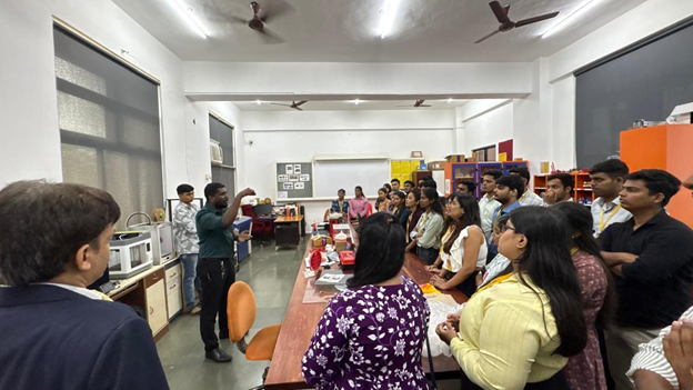 On 29th August 2025, from 2:00 p.m. to 4:00 p.m., the Institution’s Innovation Council (IIC) of PIMSR organized an Idea Showcase for First Year MMS students at the PIMSR Incubation Center. The session was conducted by Mr. Shiva Pradeep, Assistant Mechanical Engineer, with the objective of bridging the gap between classroom knowledge and practical applications by introducing students to advanced printing technologies such as laser printing, 3D printing, and ink printing. The purpose of this activity was to provide experiential learning, enabling students to understand the working principles of these technologies, their industrial applications, and the entrepreneurial opportunities they offer.