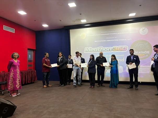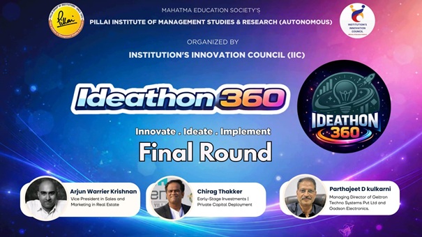 The Institution’s Innovation Council (IIC) of Pillai Institute of Management Studies and Research (PIMSR) successfully organized the qualifying round of Ideothon 360, an initiative aimed at nurturing innovation, creativity, and entrepreneurial spirit among students. The event witnessed enthusiastic participation from various student teams who presented diverse and impactful business ideas across different domains. The primary objective of the competition was to encourage innovative thinking and develop an entrepreneurial mindset among students by providing them with a platform to showcase their ideas. It also aimed to bridge the gap between theoretical knowledge and its practical application, while enhancing essential skills such as communication, teamwork, and critical thinking.
