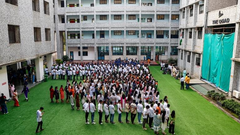 As part of the community outreach initiative, school children from nearby Zilla Parishad schools were invited to participate, adding joy, inclusiveness, and a sense of shared celebration to the event. The program witnessed enthusiastic participation from 156 students and 73 faculty members, who came together to reflect the spirit of unity and patriotism. For MMS students, the key learning outcome was developing a deeper appreciation of India’s freedom struggle and understanding the importance of values like unity, democracy, and responsibility towards society. The celebration concluded with the distribution of snacks and sweets, reinforcing the spirit of togetherness and national pride.