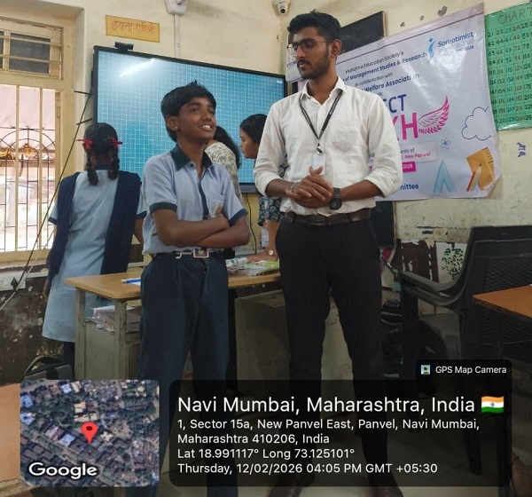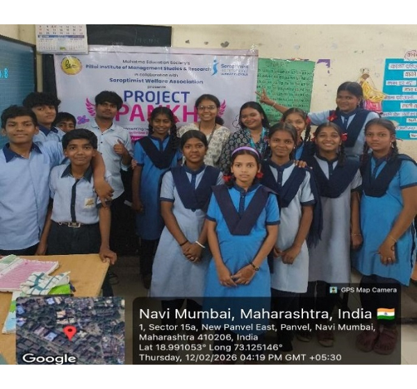 The Pillai Institute of Management Studies and Research through its Social Service Committee under Project PANKH organized a session on Mathematics and English on Thursday, 12th February 2026, for the students of 8th Standard at Zilla Parishad Gyan Jyoti Savitribai Phule School. The initiative was undertaken as part of the institute’s continued commitment to community engagement and academic support for school students.