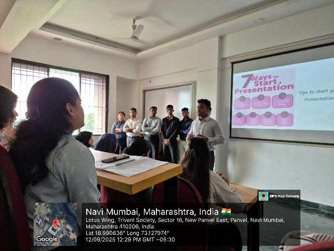 The focus of the day was on understanding how to start, progress, and end a presentation effectively. The discussion began with the question “Why Presentation Skills?” Through an interactive dialogue, the class concluded that presentation skills are among the most vital aspects of corporate communication. Mastering these skills enhances the ability to express ideas, share knowledge, and present a vision with confidence and clarity.