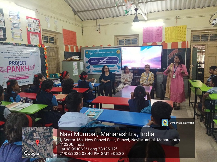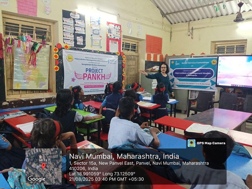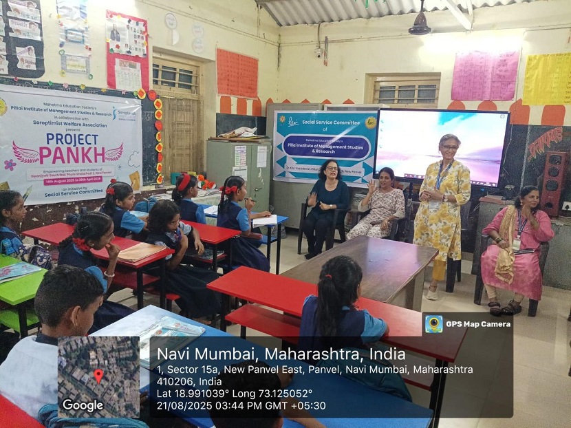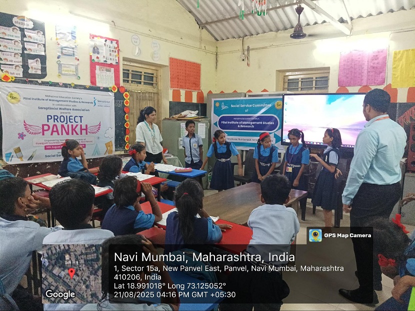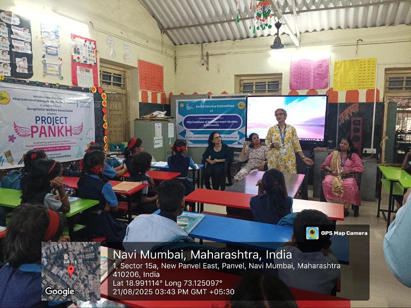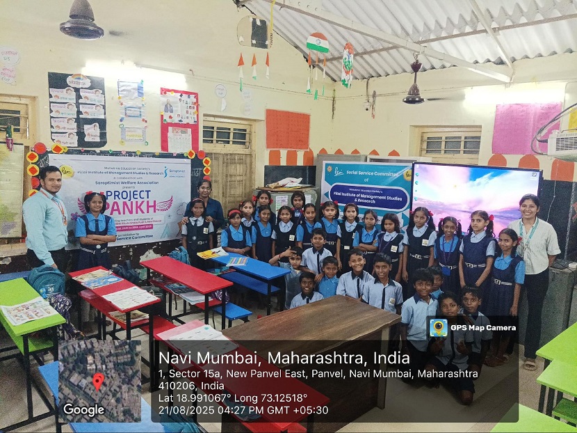 On 21st August 2025, the second-year MMS students from the Social Service Committee of Pillai Institute of Management Studies and Research (PIMSR), in collaboration with Soroptimist International, officially launched the third year of Project “PANKH” at Zilla Parishad Gyan Jyoti Savitribai Phule School, Podi.