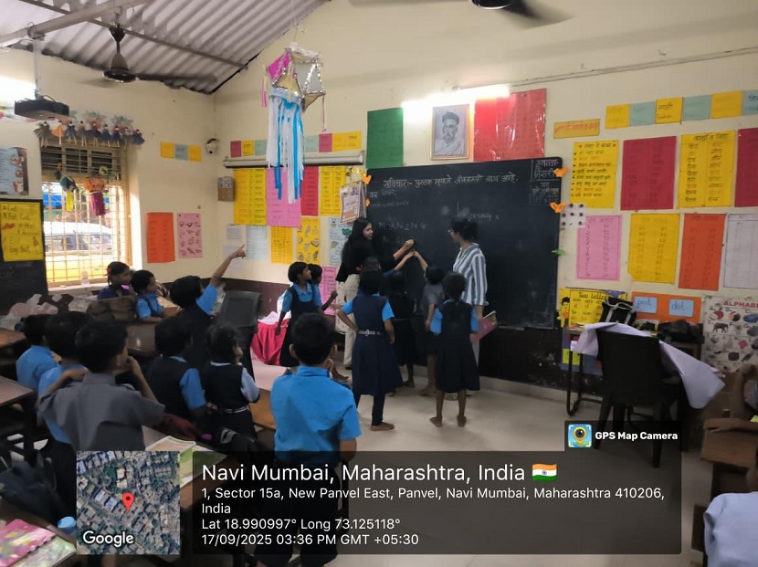As part of Project PANKH, the Social Service Committee of Pillai Institute of Management Studies and Research (PiMSR) conducted an interactive and activity-based English learning session for Grade 3 students at Zilla Parishad Gyan Jyoti Savitribai Phule School, Podi, on 17th September 2025.