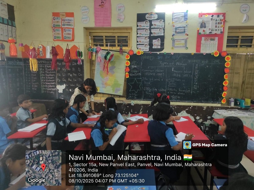 Understanding the critical role of grammar and vocabulary in academic development, the session was designed to be both educational and interactive, targeting students of 4th and 5th standard. It began with a brief introduction, followed by simplified explanations of essential grammar concepts. Students were guided in forming meaningful sentences using given words, helping them understand sentence structure and language flow.