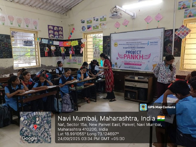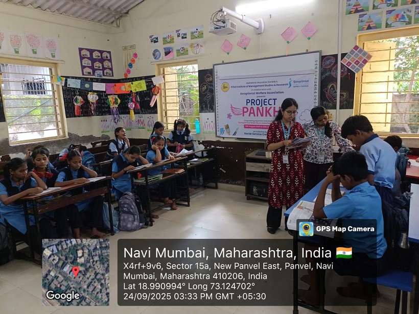 As part of Project ‘PANKH’, the Social Service Committee of Pillai Institute of Management Studies and Research (PIMSR) conducted an engaging Session on English Grammar and Vocabulary on 24th September, 2025 for the students of Zilla Parishad Gyan Jyoti Savitribai Phule School, Podi. The primary objective of the session was to enhance foundational English language skills, particularly in grammar and vocabulary, thereby supporting the students’ academic development and boosting their confidence in communication.