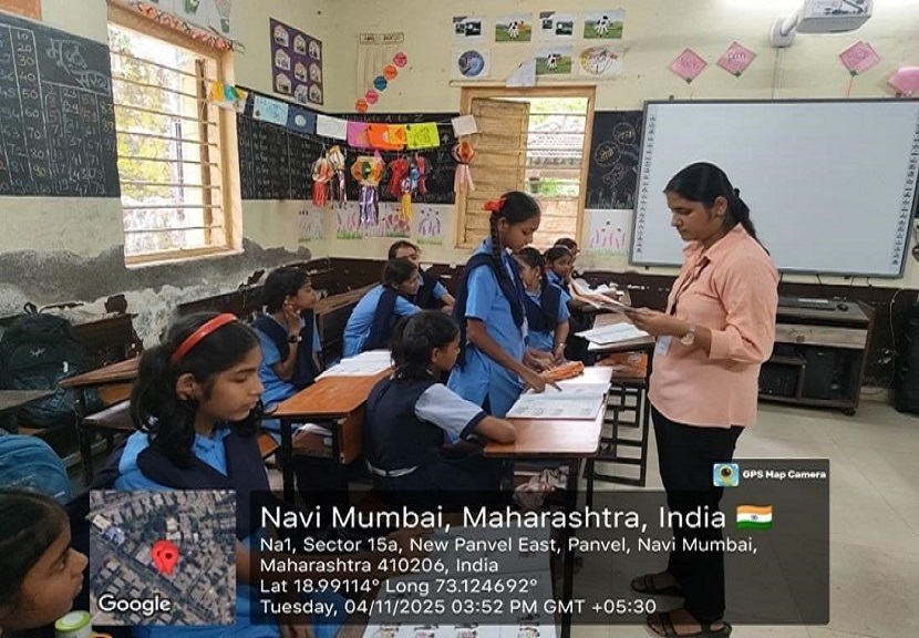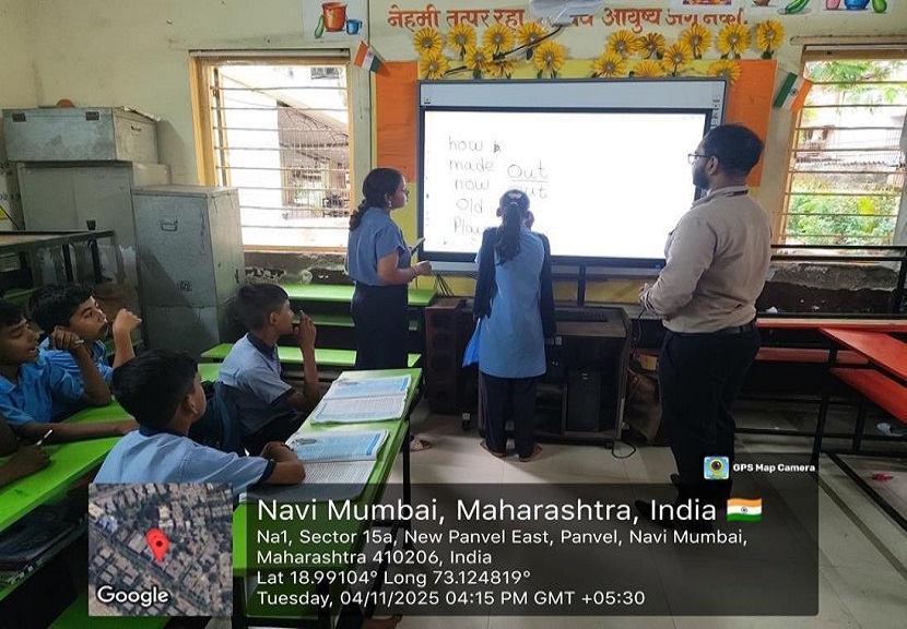 Recognizing the importance of communication skills in academics, the workshop aimed to create a supportive and engaging environment for students to enhance their reading and vocabulary. The session began with student introductions, followed by a reading activity where passages from their English textbook were read aloud and explained in Hindi. This approach helped the 6th standard students understand the lesson’s meaning more effectively, thereby improving their comprehension and reading fluency.