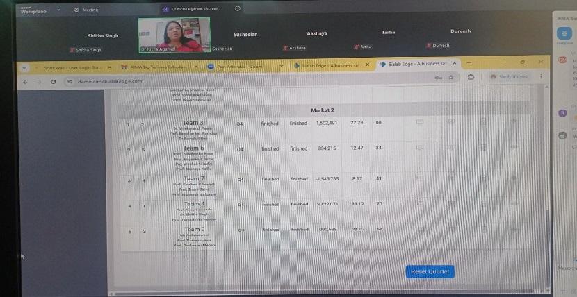 The objective of the program was to provide students with hands-on exposure to business simulations, strengthen their decision-making abilities, and demonstrate the interconnectedness of various functional areas in a corporate setup. Students were divided into markets and teams, where they managed virtual companies across four quarters of simulated business operations. This required them to make strategic decisions in marketing, finance, operations, and human resources, thereby closely replicating real-world business challenges.
