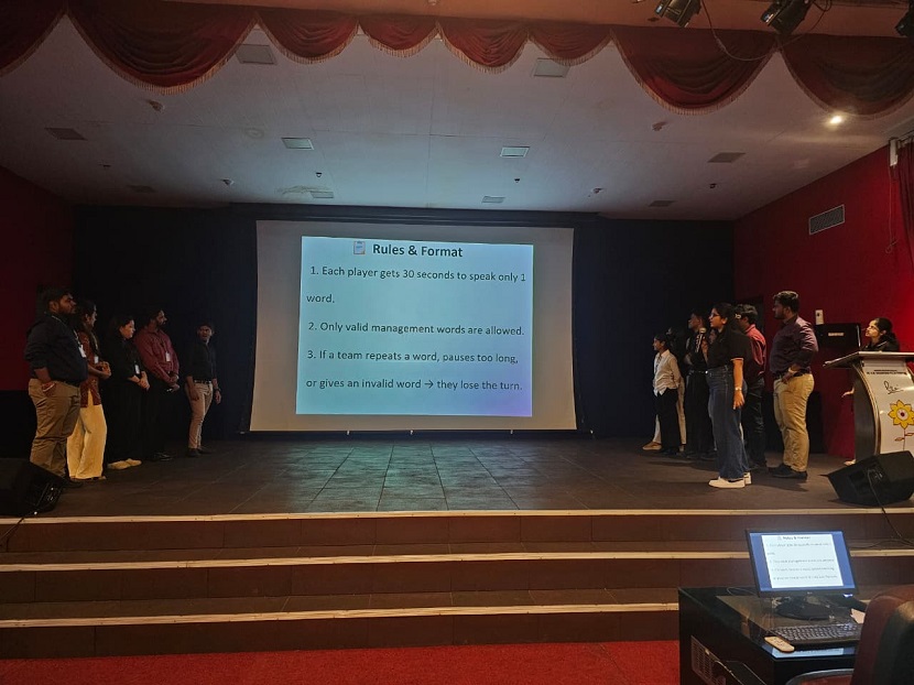 The programme commenced with Identify Logo & Taglines, where participants answered 25 brand-related prompts. Based on performance, 20 students advanced to the second round. The Scrambled Words round required contestants to solve a minimum of 12 out of 20 jumbled words within five minutes, leading to the selection of 12 students for the next stage. In the third round, Word Chain, the shortlisted participants were divided into two teams and tasked with forming continuous chains of management-related terms. One team of six students qualified for the final round. The concluding round, High IQ Puzzle Solving, evaluated individual speed and accuracy, and finally the first and second winners were ranked accordingly.